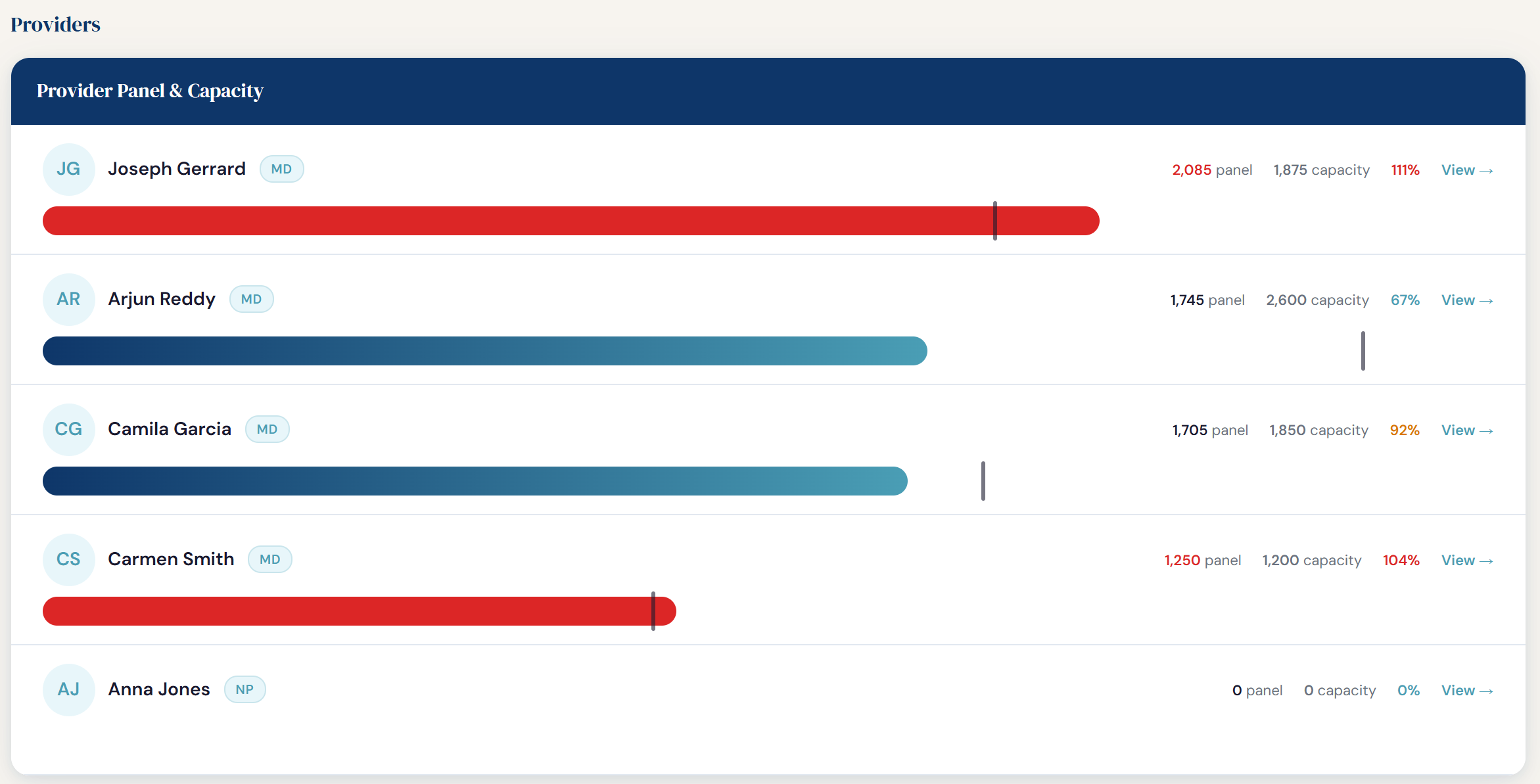 PanelWise simplifies growth by showing you each clinic and provider’s capacity and demand, so you can tailor actions to the root cause of growth challenges.